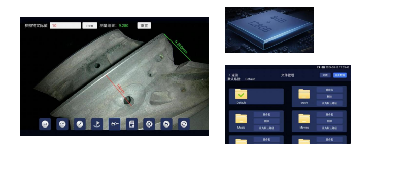 7.强大的储存功能——自带128gb 内部存储 64gu 盘,存储空间满足存储更多照片、视频的需求,在设备 操控上也将得到更加酣畅的体验;对大量存储的图片视频可进行分类管理并对图片可放大、缩小、还原、删除、涂鸦,对比 测量等操作。