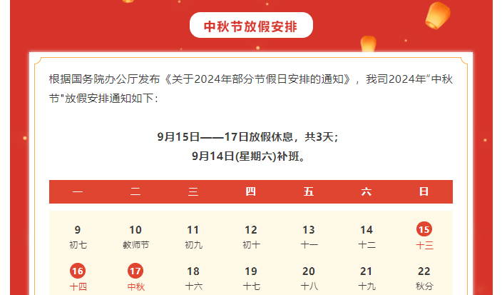 中秋朤朤 —— 中秋节放假通知-kaiyun全站网页版登陆