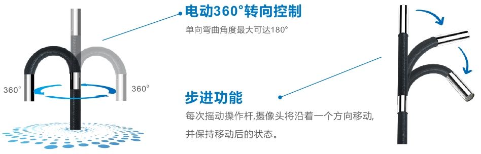 l自动锁定 精准定位——亚泰专利, 步进、快慢速调节和微调锁定功能以及电动360°转向控制,最大单向220°弯曲角度。